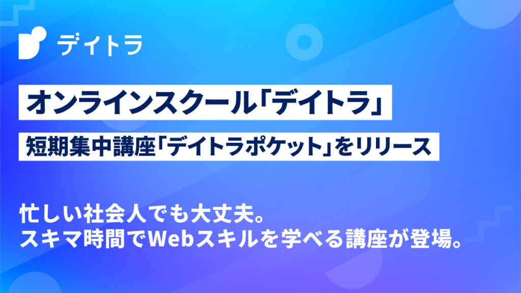 株式会社デイトラ(本社:東京都豊島区、代表取締役:大滝昇平)は、2025年11月4日より、スキマ時間で効率的にWebスキルを習得できる新サービス「デイトラポケット」の提供を開始します。
